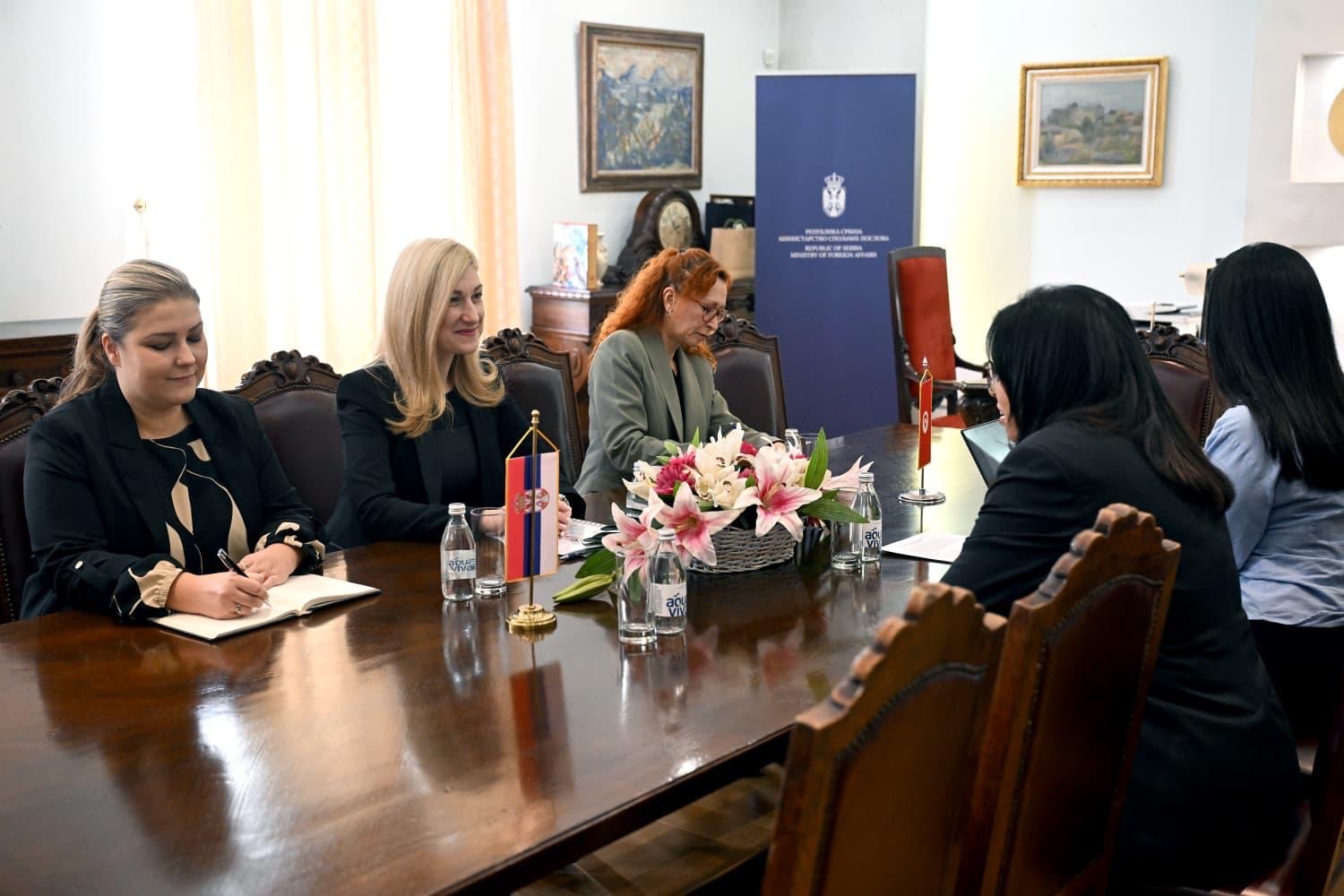 The State Secretary of the Ministry of Foreign Affairs Nevena Jovanović met today with the Ambassador of the Republic of Tunisia to Serbia, Imen Laajili Ammari.