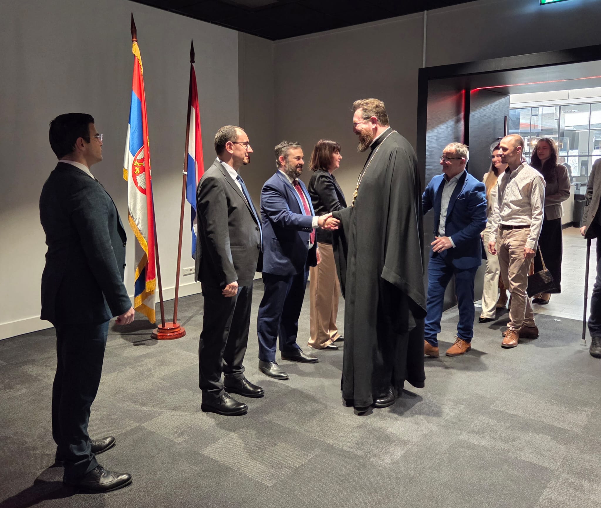 Prijemu su prisustvovali zvaničnici Ministarstva inostranih poslova Holandije, generalni direktor Organizacije za zabranu hemijskog oružja Fernando Arias, generalni sekretar Stalnog arbitražnog suda Marcin Čepelak, brojni ambasadori i ostali članovi diplomatskog kora, predstavnici parohija SPC na teritoriji Holandije, poslovni ljudi našeg porekla, kao i predstavnici kulturnih, sportskih, studentskih i drugih udruženja naše dijaspore.