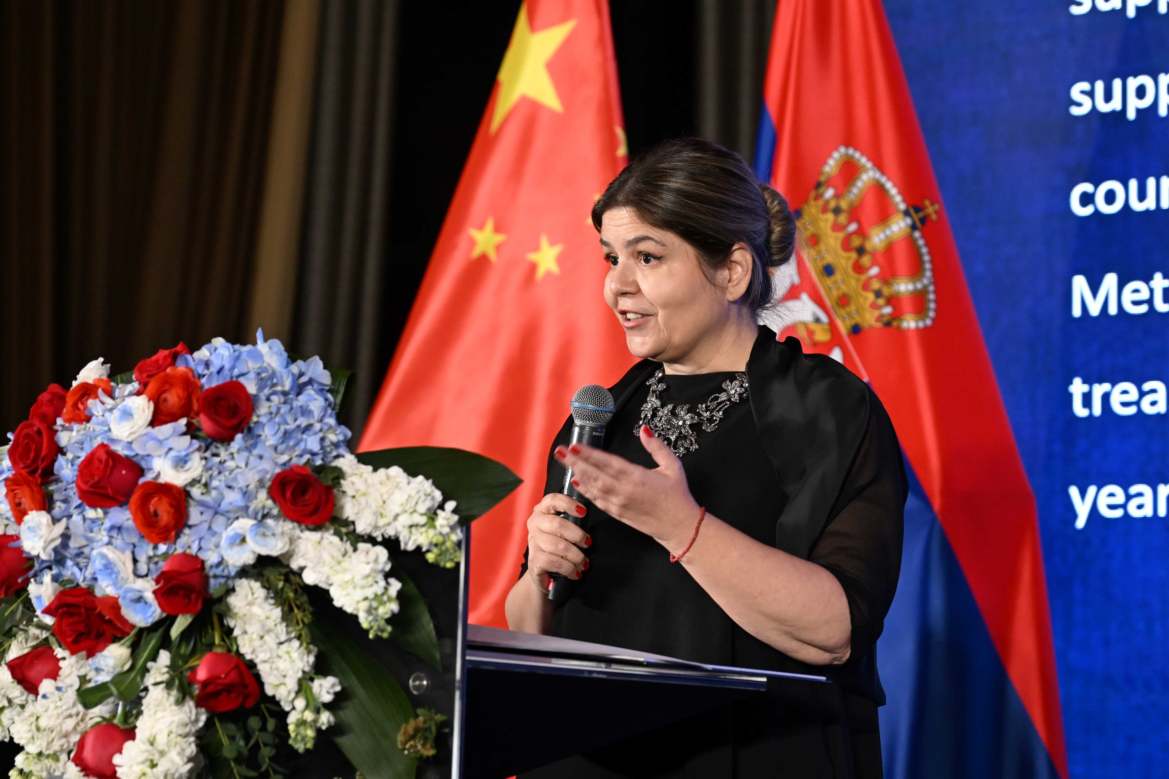 Када је реч о билатералној сарадњи Србије и Кине, подвукла је значај сусрета на највишем и високом нивоу, посебно посете председника Александра Вучића НР Кини 2025. године, као и кинеског председника Си Ђинпинга Србији 2024. године. Изразила је дубоко уверење да ће односи између Србије и Кине наставити снажно да се развијају, те да ће посебан импулс сарадњи дати државна посета на највишем нивои из Србије Кини, коју очекујемо ове године и којој придајемо посебан значај. Гостима је посебно указала на важност одржавања Експо 2027 у Београду, који пружа свестране могућности за додатни развој сарадње међу земљама учесницама.