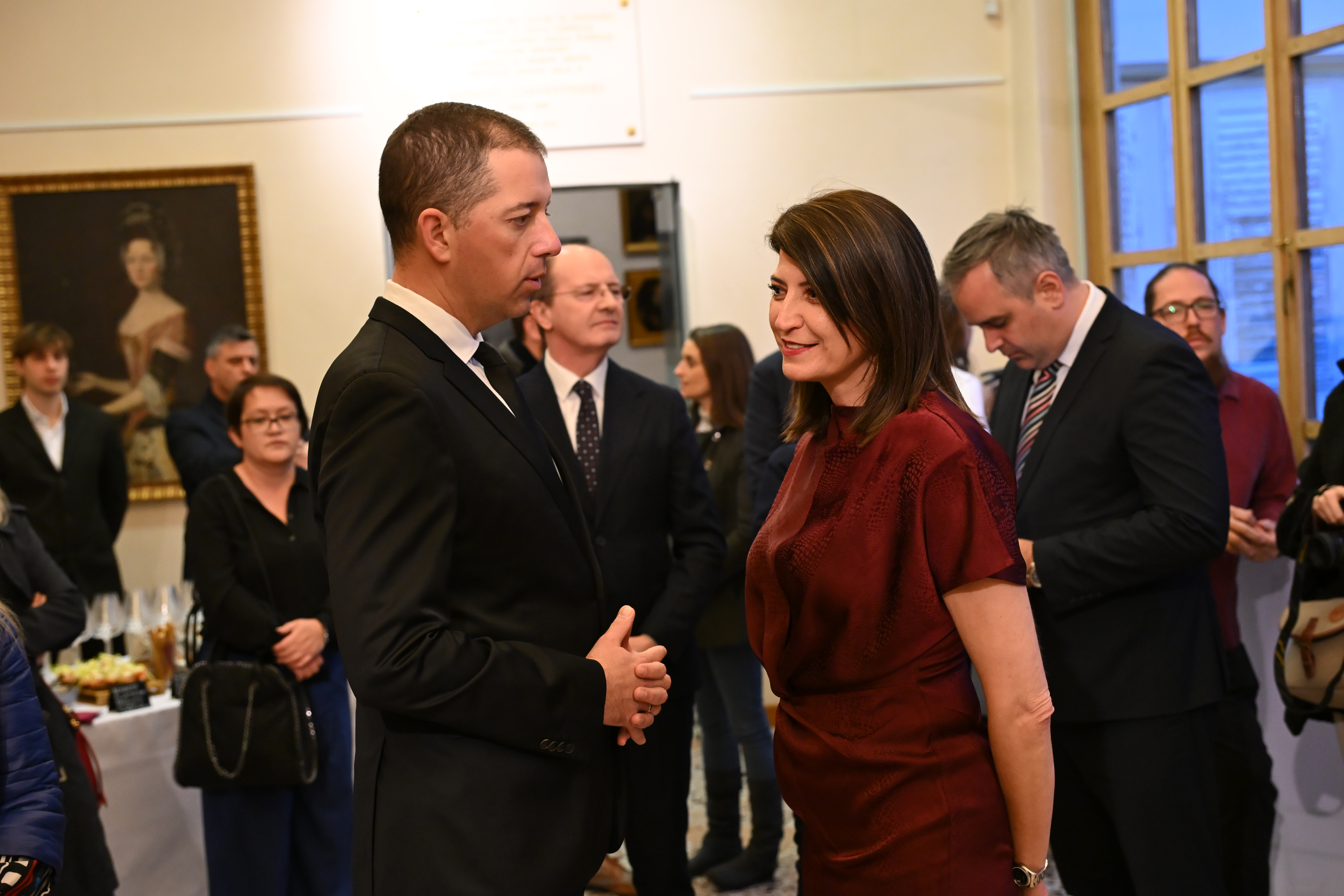 Svečanosti su prisustvovali predstavnici Narodne skupštine Republike Srbije, Srpske pravoslavne crkve, Grada Trsta, italijanskih institucija kulture, kao i srpske zajednice u Trstu, a prisutnima se obratio i konzul Srbije u Trstu Nemanja Sekicki.