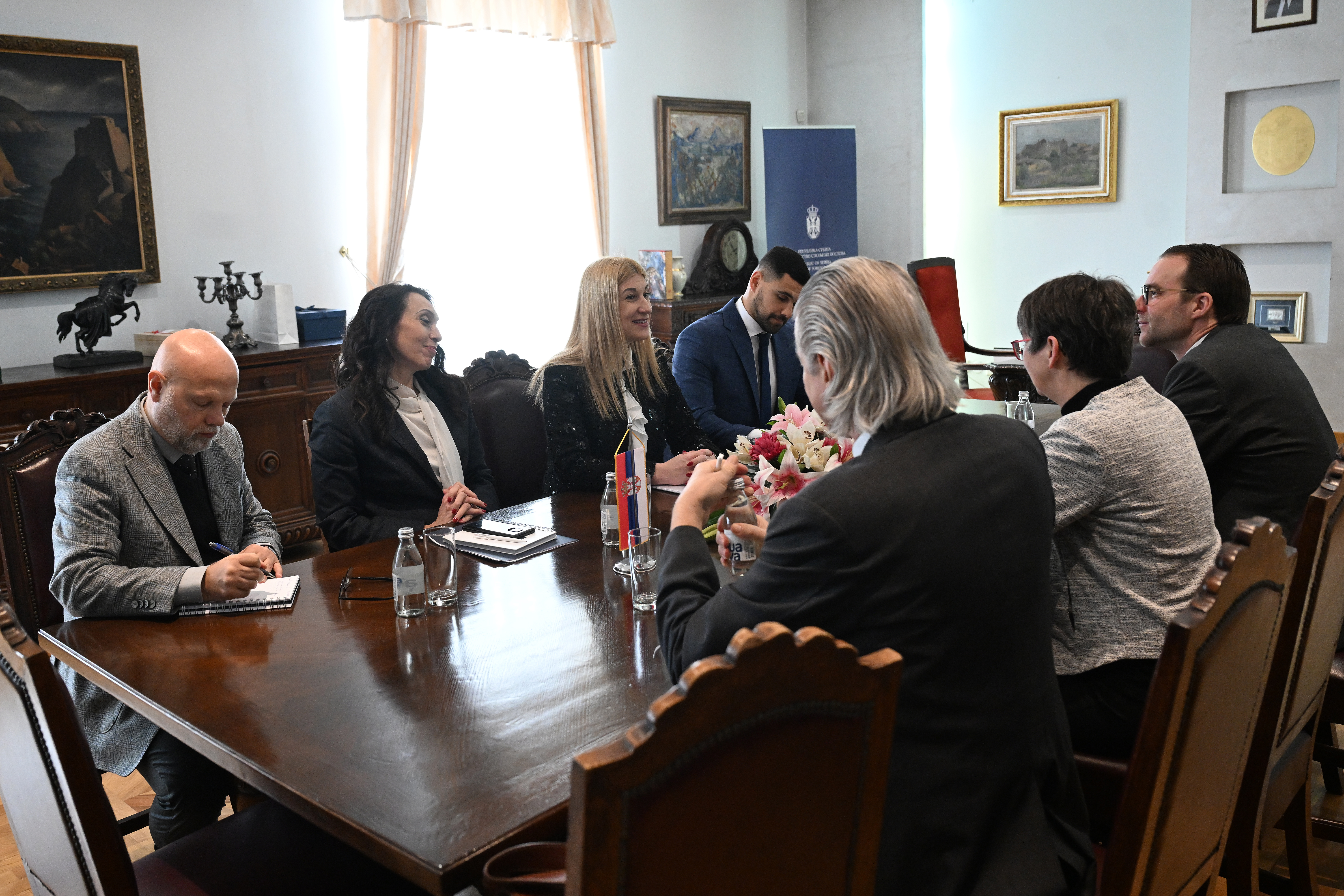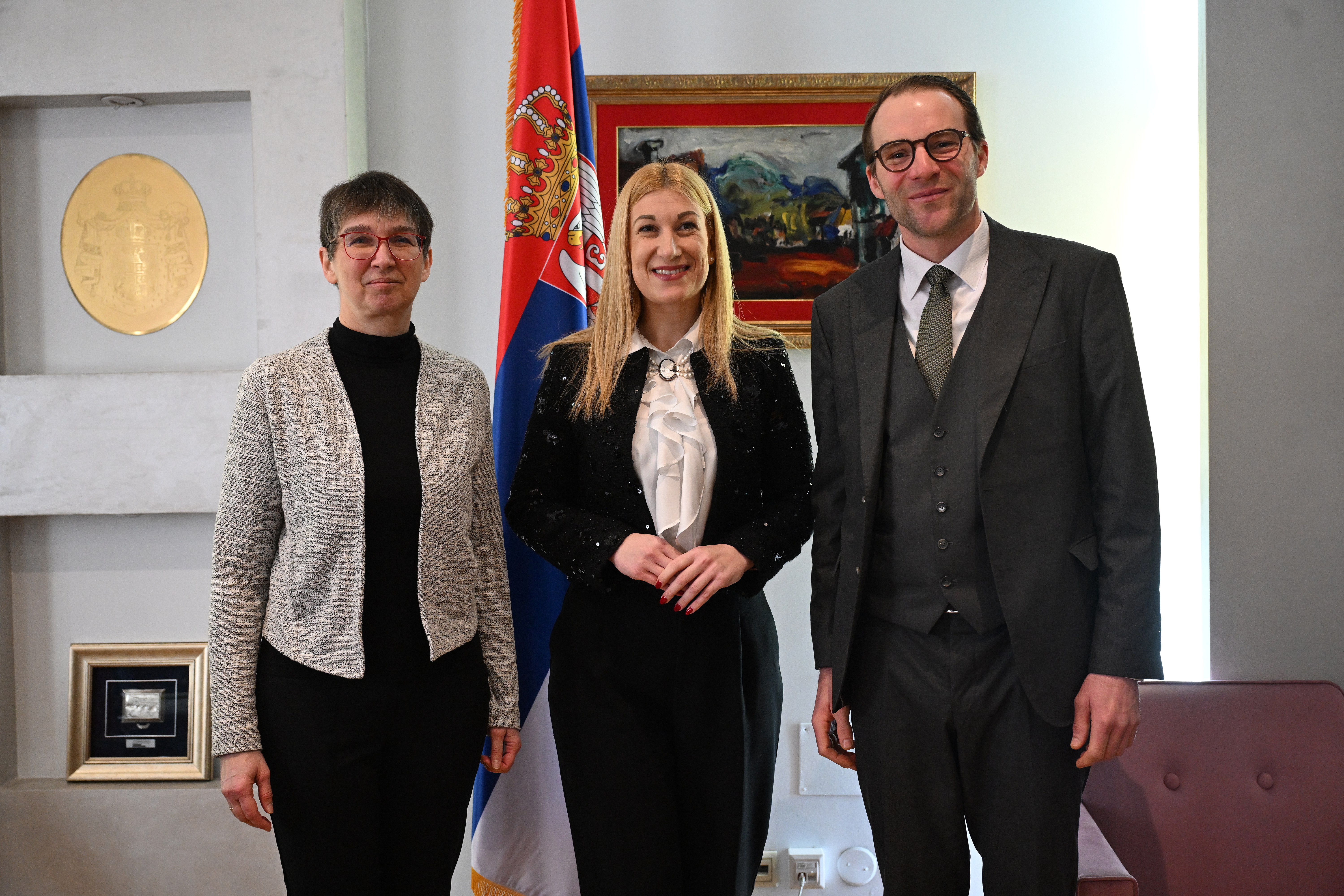 Јовановић је искористила прилику да упозна саговорнике са актуелним дешавањима на Косову и Метохији и указала на изазове са којима се суочава српско становништво, укључујући континуиране облике физичког насиља и институционалних притисака. Посебно је скренута пажња на најаве у вези са такозваним законима о странцима и возилима, који додатно усложњавају положај српске заједнице и имају негативне импликације по остваривање основних права, пре свега у погледу рада и слободе кретања. У том контексту, указано је на значај ангажмана међународне заједнице у циљу очувања стабилности и обезбеђивања услова за наставак дијалога.